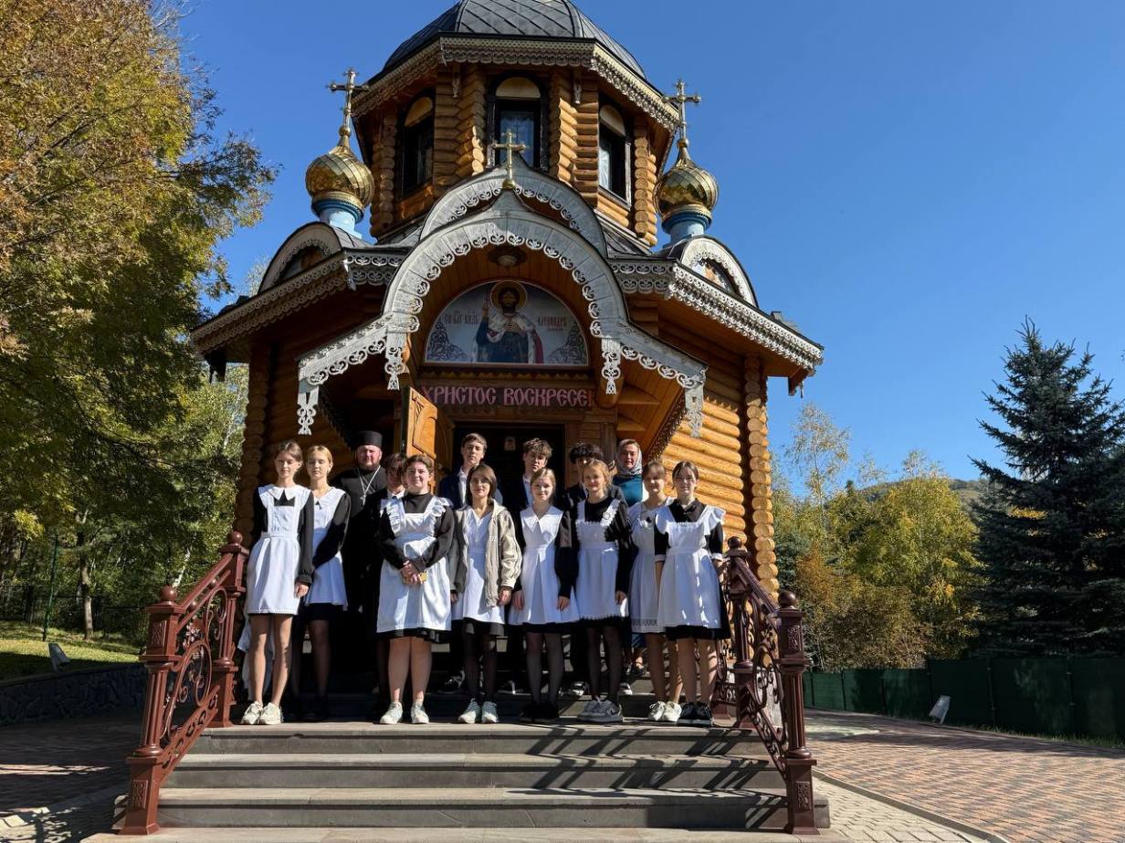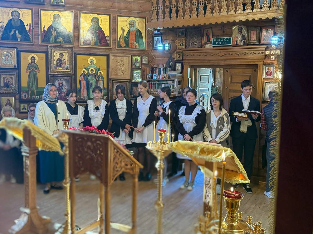 8 октября 2025 в день памяти преподобного Сергия, игумена Радонежского десятиклассники вот главе со своим классным руководителем Натальей Викторовной Некрасовой приняли участие в праздничном богослужении.